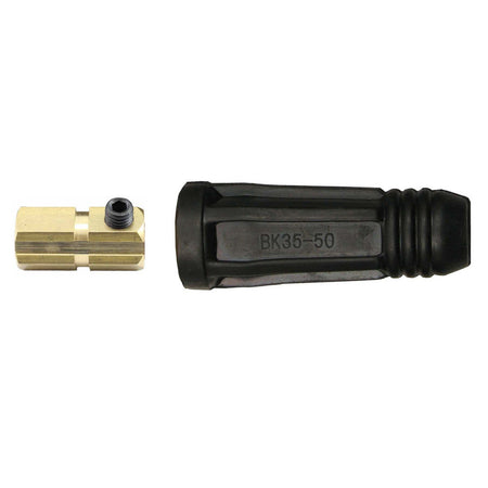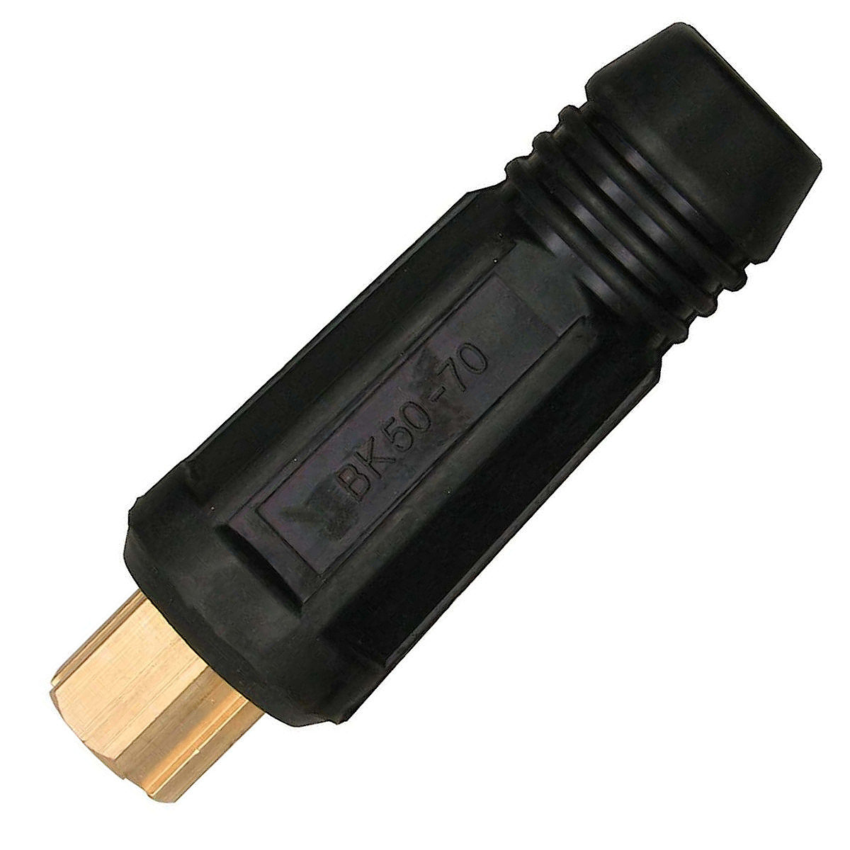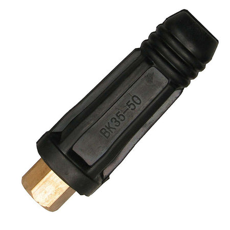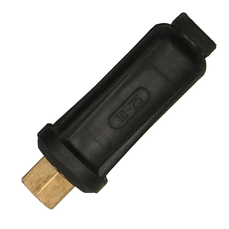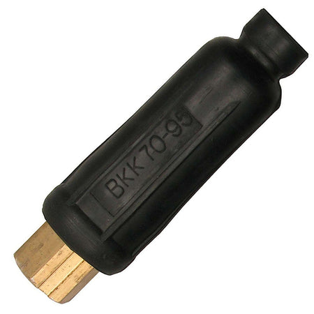 Dinse type socket with female brass connector and insulated rubber cover, suitable for welding cable from 10 to 95mm.