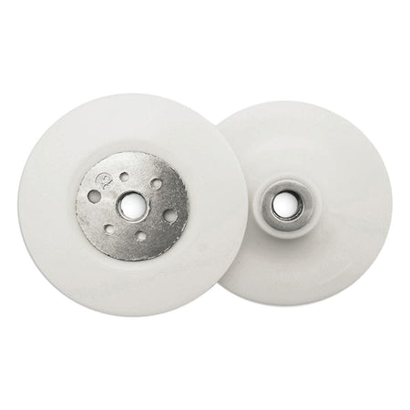 A range of white nylon backing pads from Flexipads that provides medium flexibility and comes with with a zinc alloy locking nut; ideally suited for 60+ finer grit abrasives.