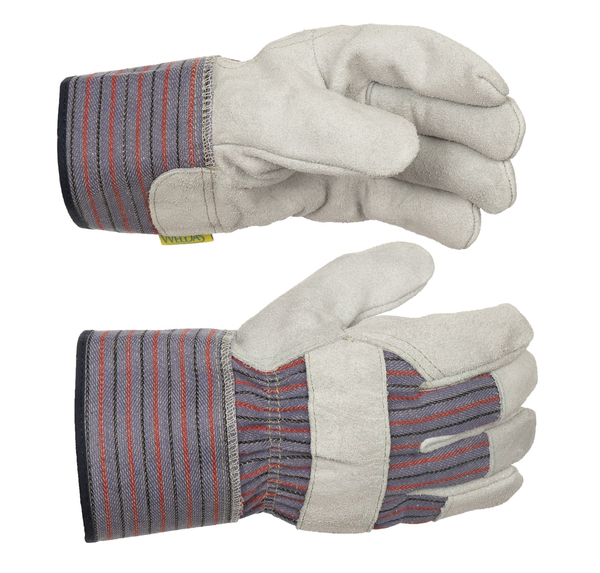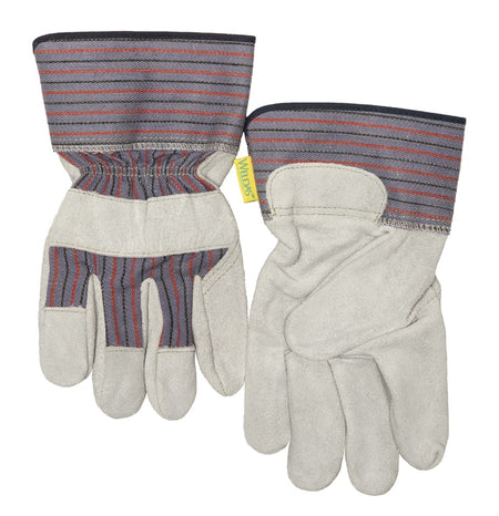 General purpose work glove with knuckle strap made of split cow leather, lining in the palm and with 7,5 cm safety cuff