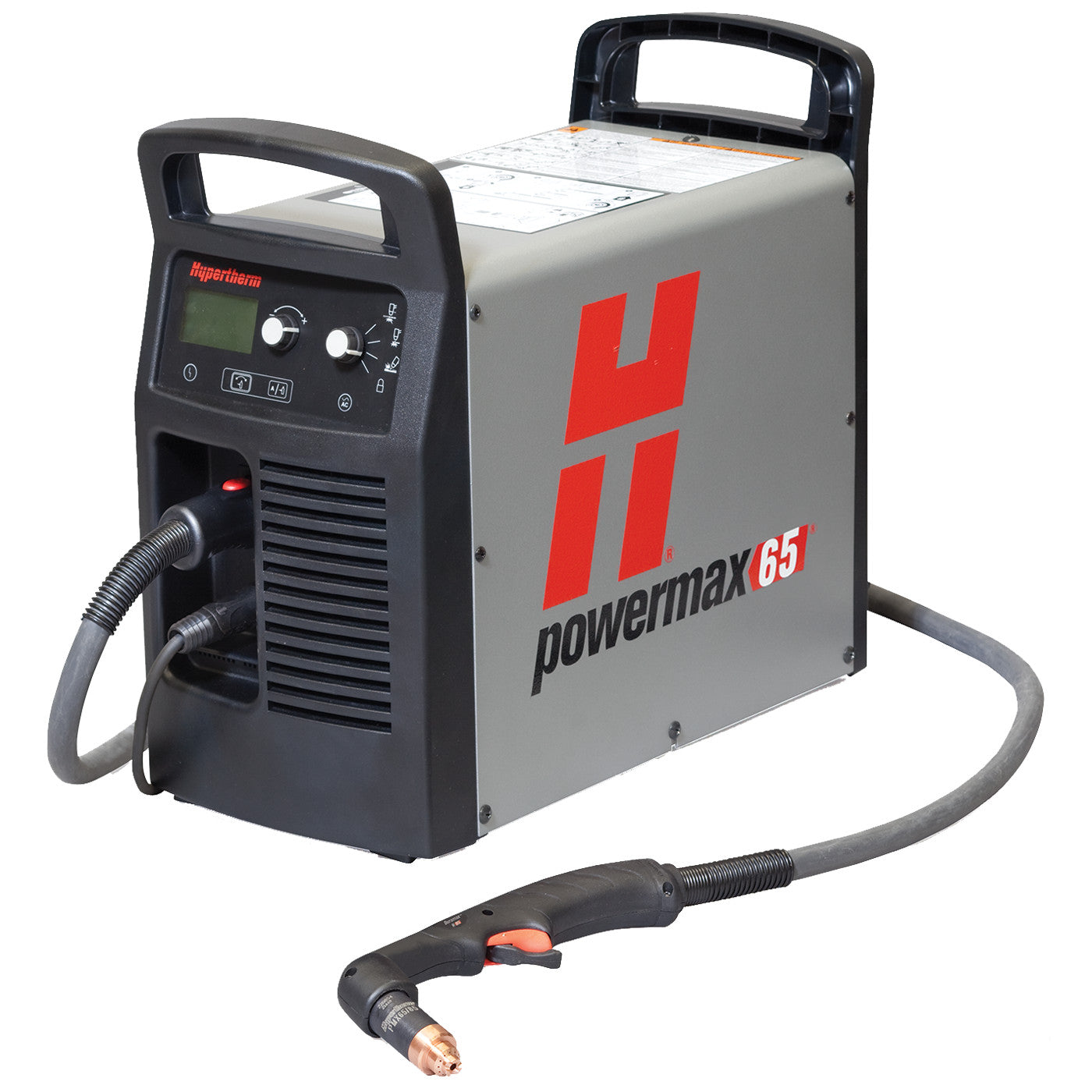 The Hypertherm Powermax 65 hand plasma cutting system is a 3 phase 400v CE model with built-in technology including Smart Sense that automatically selects the correct pressure and Spring Start for consistent starting and torch reliability.