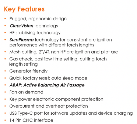 EVO CUT 80 Plasma Inverter, UPH-125 Cutting Torch (6m), 85 Amp Consumable Starter Pack, Earth Clamp & Lead (3m), USB Stick with Operating Manual.