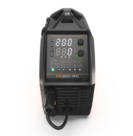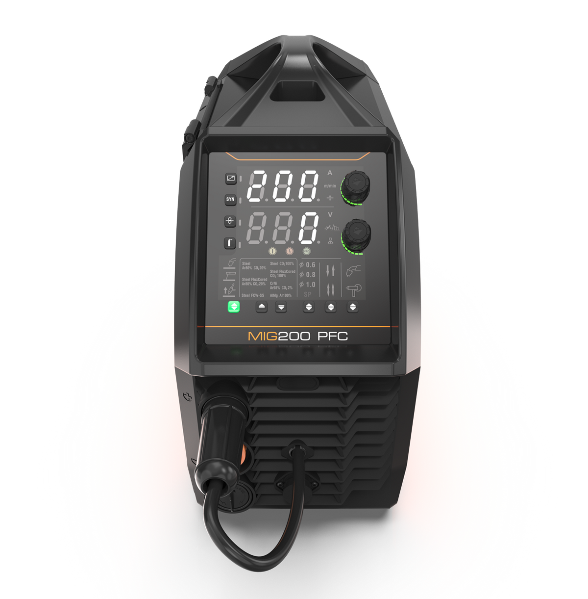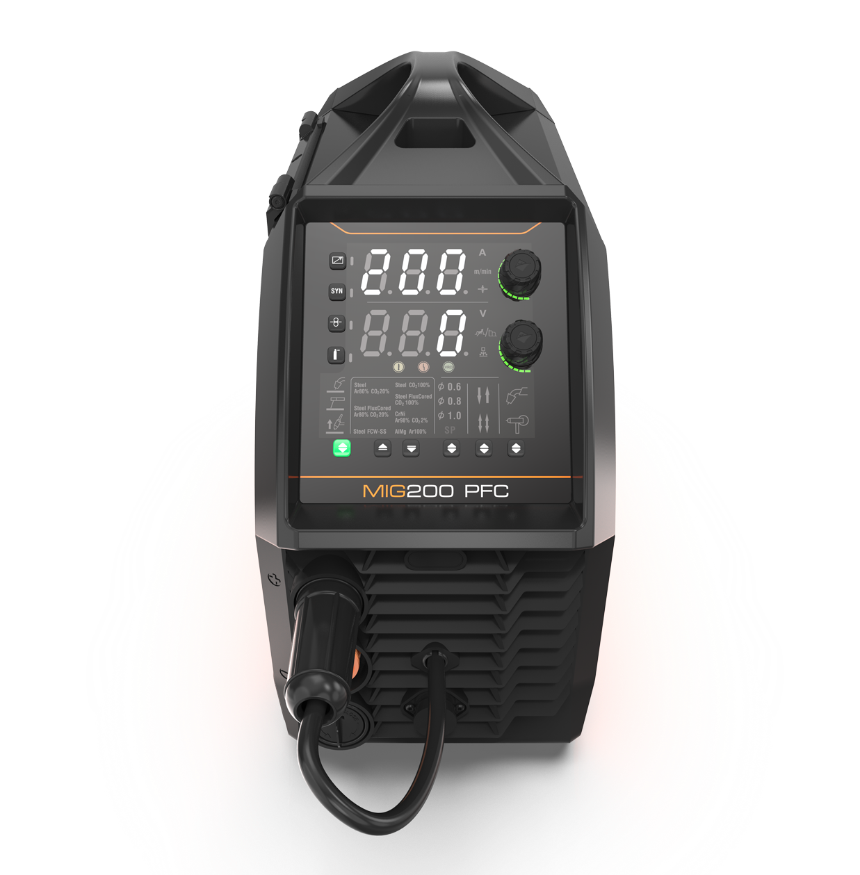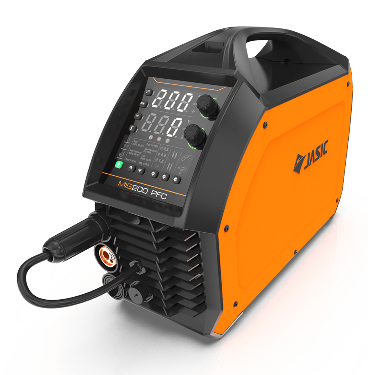 The Jasic EVO MIG 200 PFC (EM-200C) forms part of the EVO 2.0 series welding inverters. Designed as an uprated model of the very popular Jasic PRO series, the EVO MIG 200 has a stronger casing and a large LED screen with synergic setup as standard as well as a number of other exclusive features. Still, the excellent Jasic build quality, weld quality, warranty, after-sales, and reliability.