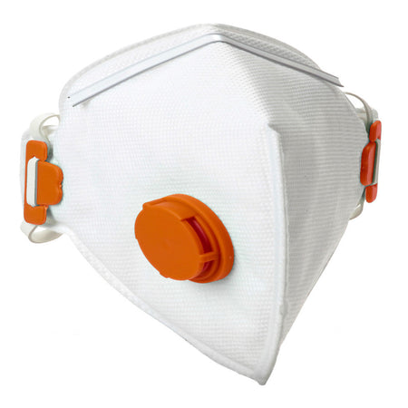 This veritcal folding dust mask with nose clip ensures a good, sealed fit for any individual. The exhalation valve and filter material offers a low breathing resistance.