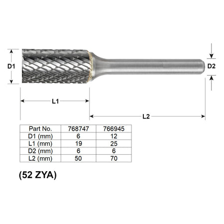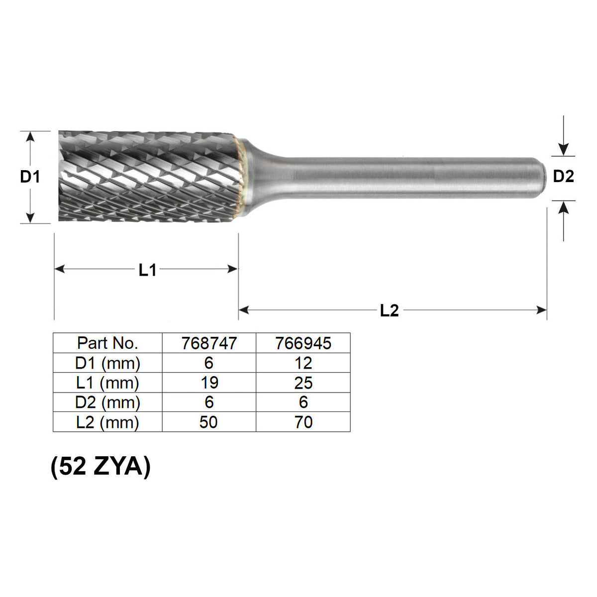 Tyrolit premium 52ZYA cylinder shape tungsten carbide burrs deliver long lifetime performance, high stock removal and features an MX diamond cut tooth shape.