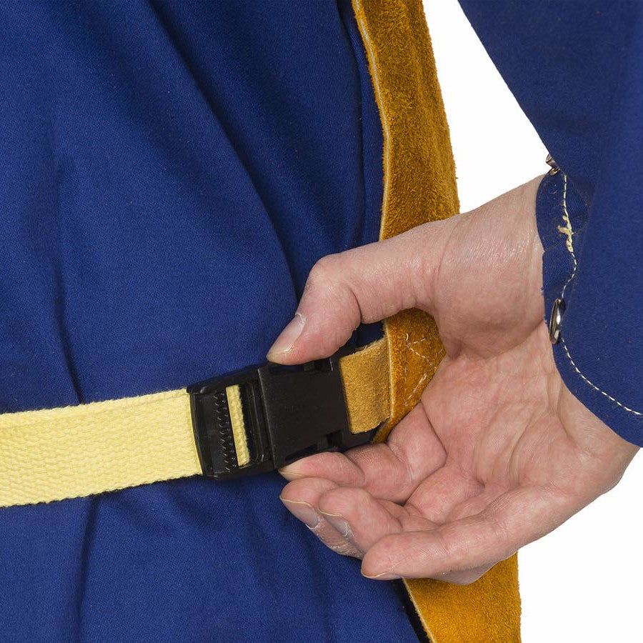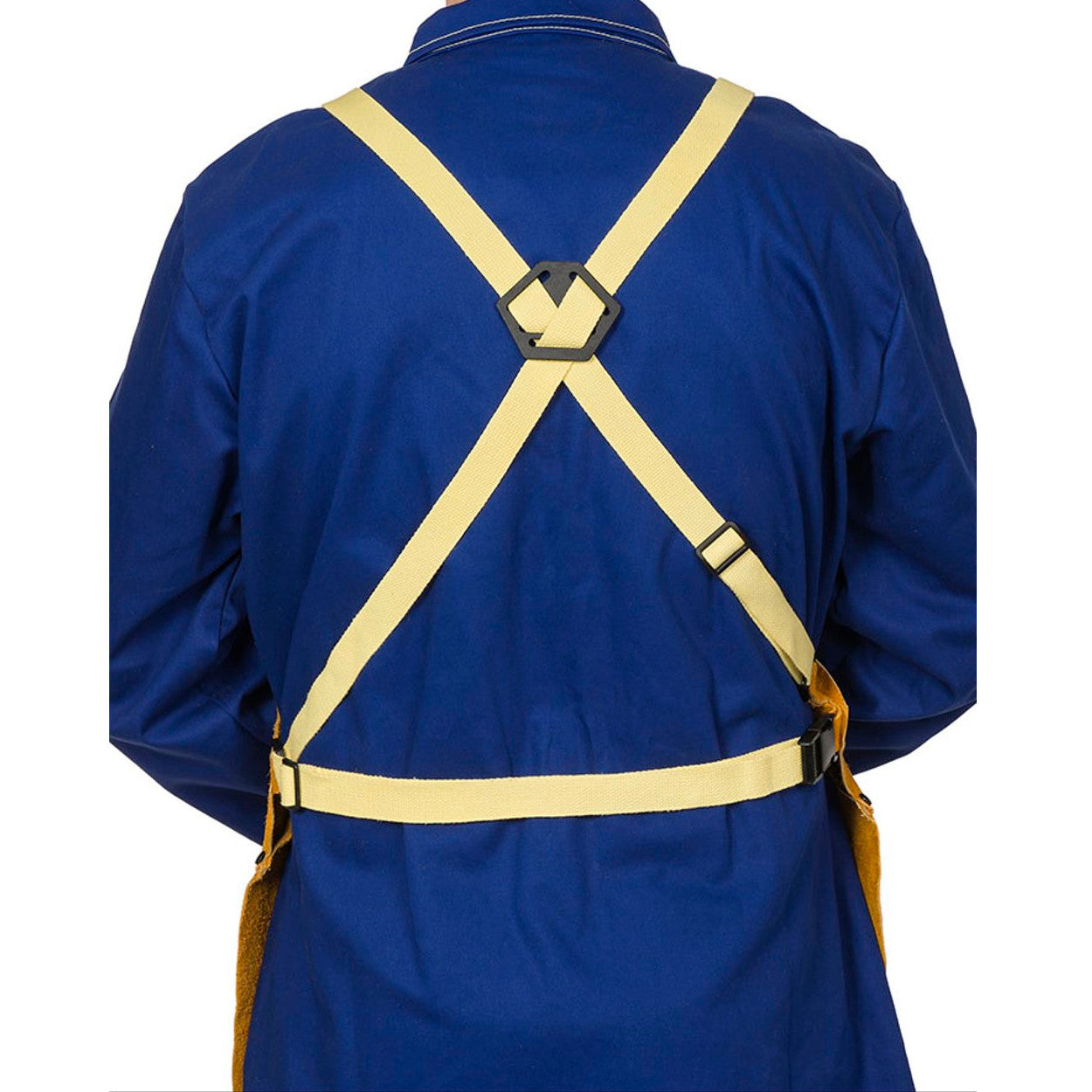 This heavy duty Golden Brown welding apron from Weldas features riveted stress points for improved garment life and a self balancing strap system for all day comfort.